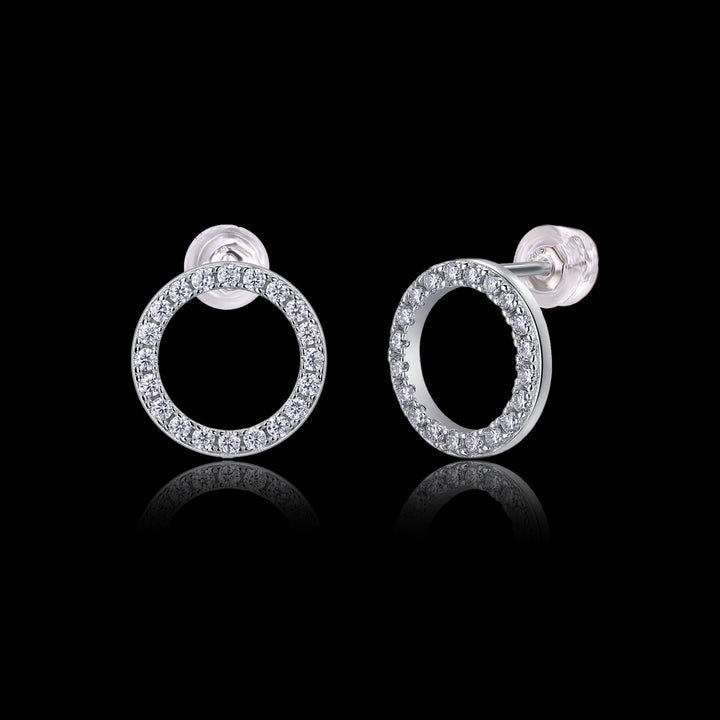Disse sirkelformede øreproppene gir en ren, isete glans. Hver øredobb har en rad med høyklare moissanittsteiner som gir en skarp gnist. Den åpne sirkelformen gir et lett, stilig utseende som er enkelt å kombinere med enhver passform.