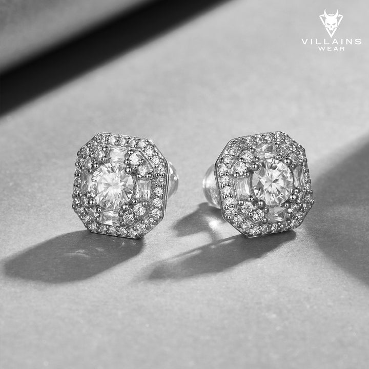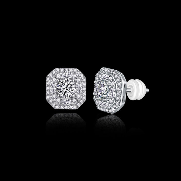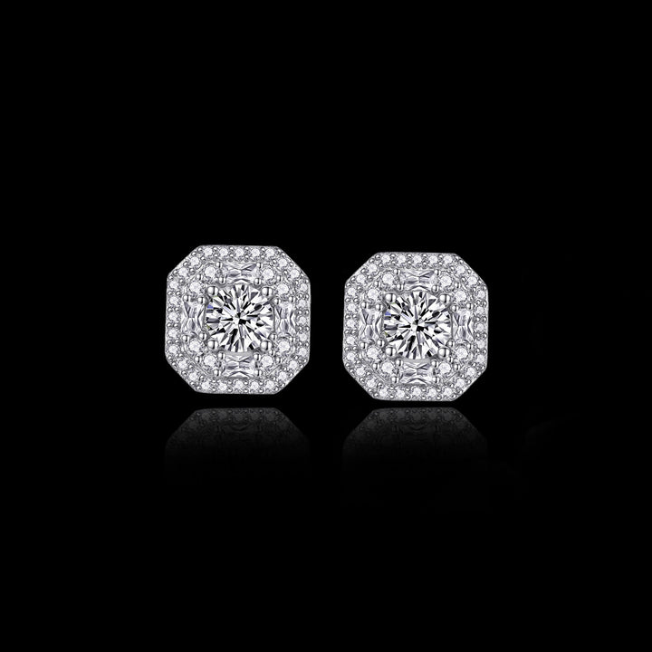 Disse strålende Halo Moissanite-øredobbene gir en skarp, raffinert glans til ethvert antrekk. Hver øredobb har en 0,5 karat moissanittstein satt i en lagdelt halo-sliping som forsterker ilden og klarheten. Den åttekantede rammen gir en dristig, ren struktur som skiller seg ut uten å føles tung.